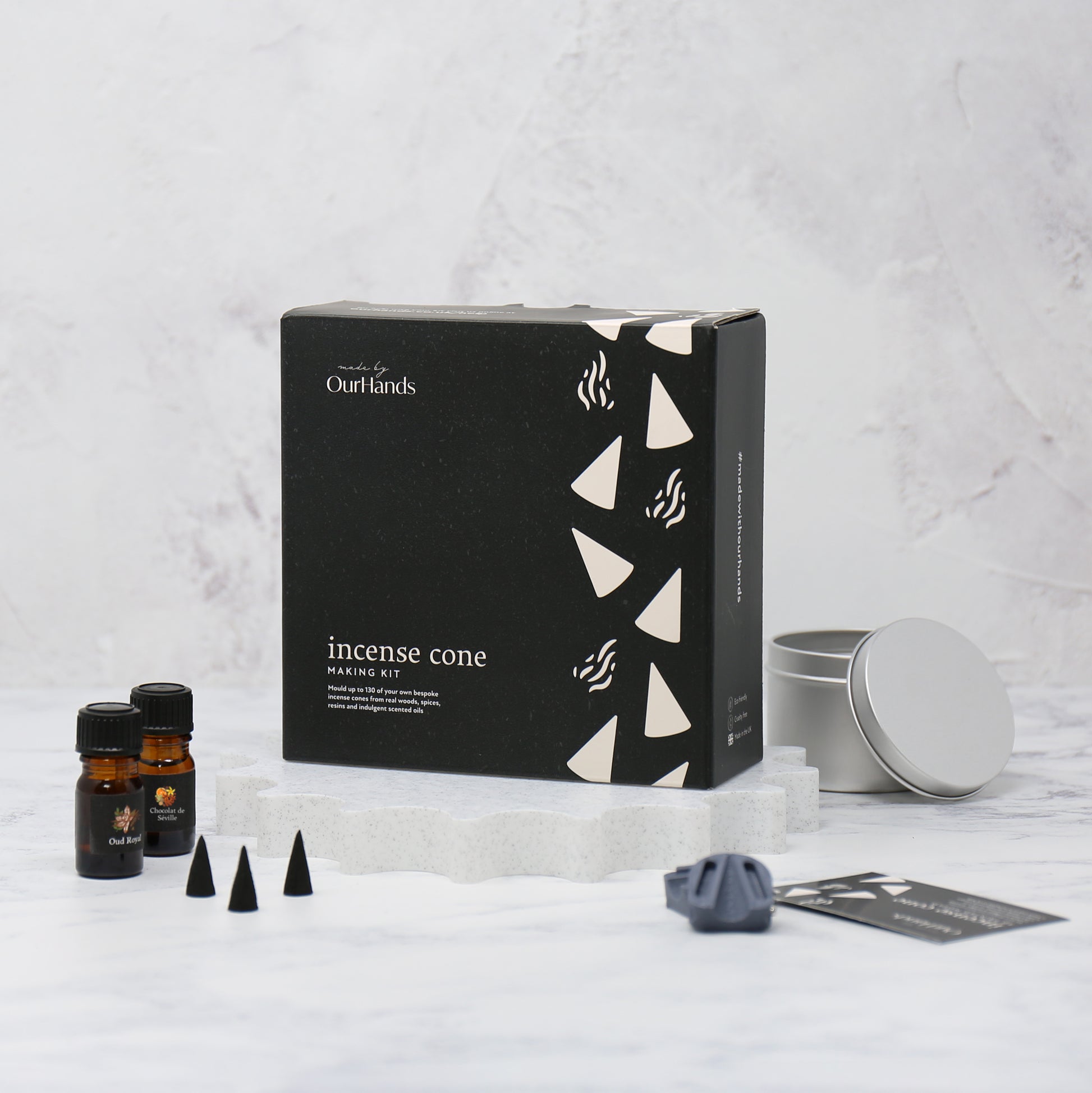 Le kit contient tout ce dont vous avez besoin pour commencer à fabriquer vos cônes d'encens: des ingrédients naturels et un moule conçu sur mesure et imprimé en 3D afin que vous puissiez obtenir le cône parfait à chaque fois. Vous aurez juste besoin d'un bol et d'un peu d'eau.